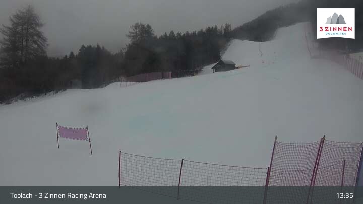 Hier siehst du die Berge rund um Toblach in Südtirol. Die Webcam befindet sich an der Talstation des Trenkerlifts.
