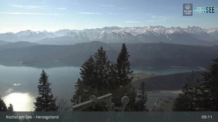 Webcam Herzogstand: Blick auf den Kochelsee, 1,609 m