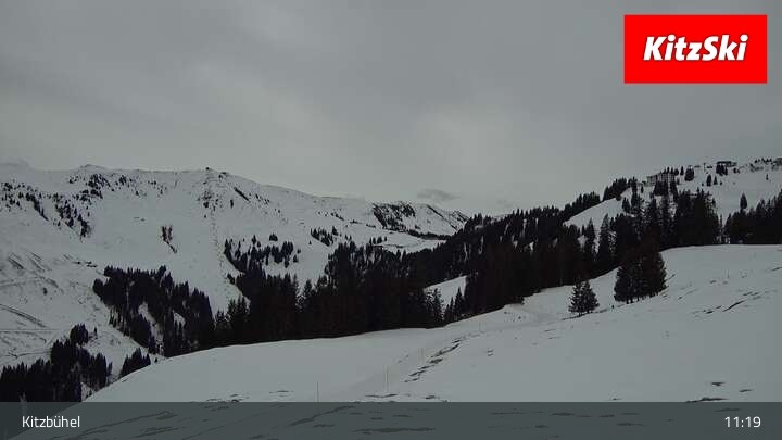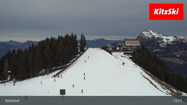 Die Webcam zeigt der den Blick vom Berghaus Walde am Hahnenkamm. Gut erkennen kann man unter anderem die Bergstation der Hahnenkammbahn.