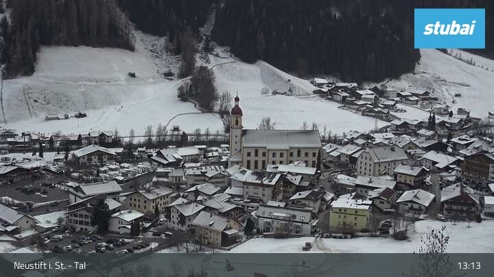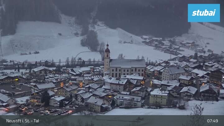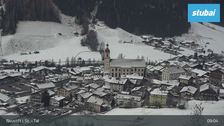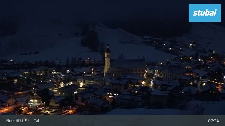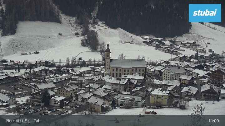 Die Webcam blickt auf den kleinen Ort Neustift im Stubaital.