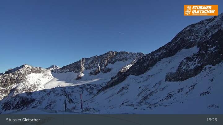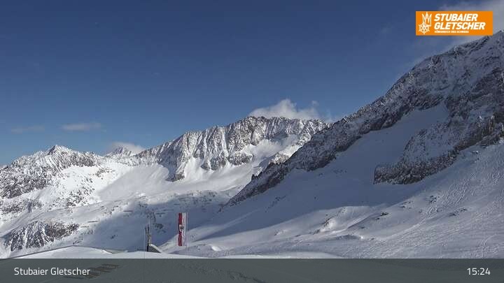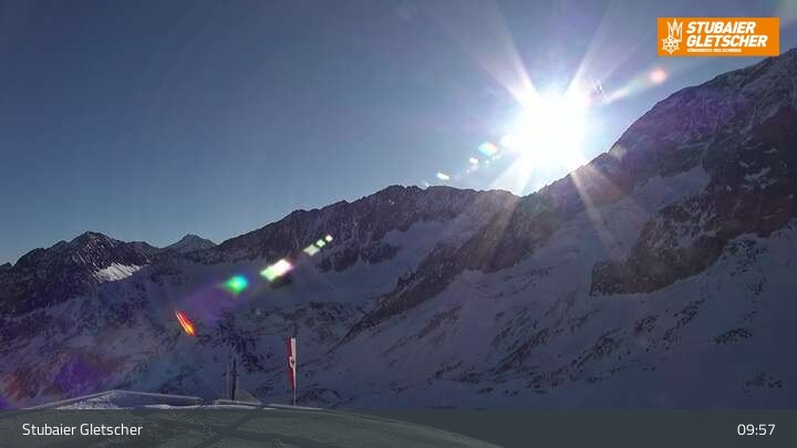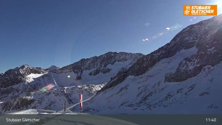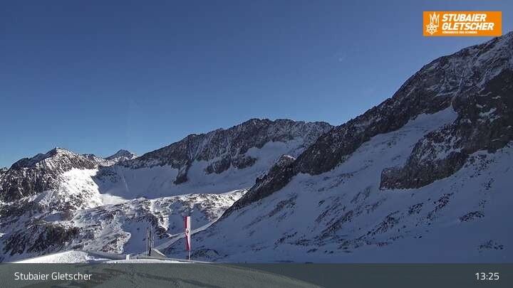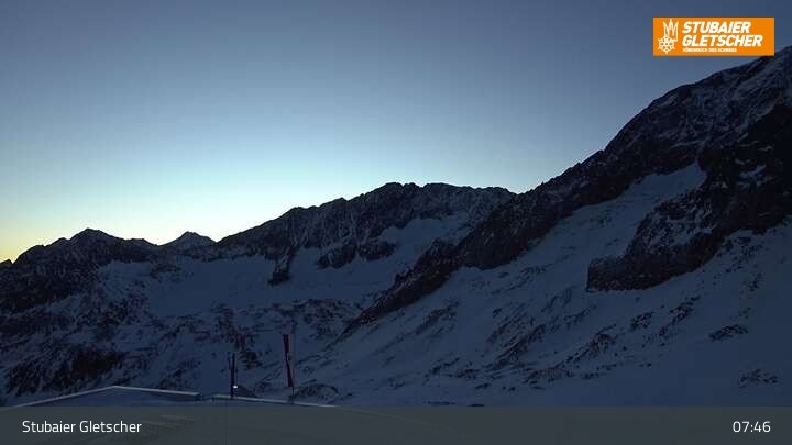 Die Kamera befindet sich an der Bergstation der Eisgrat Gondel am Stubaier Gletscher.