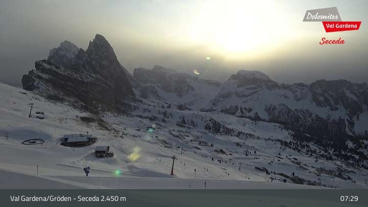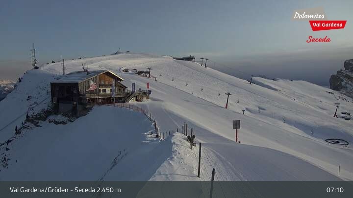 Von der Seceda eröffnet sich der Blick nach Süden zur Sellagruppe und dem Langkofel