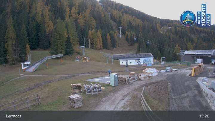 Die Webcam befindet sich an der Bergstation des Hochmoos Express in Lermoos und blickt auf die umliegenden Alpen.