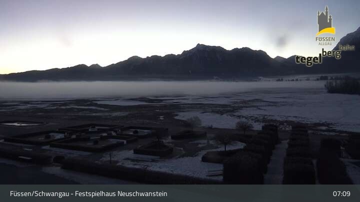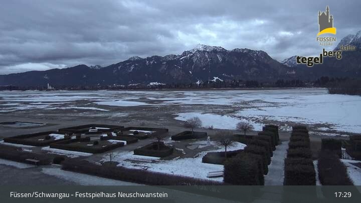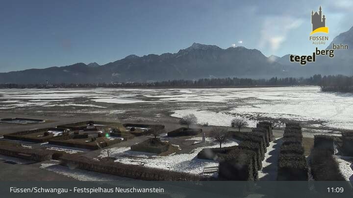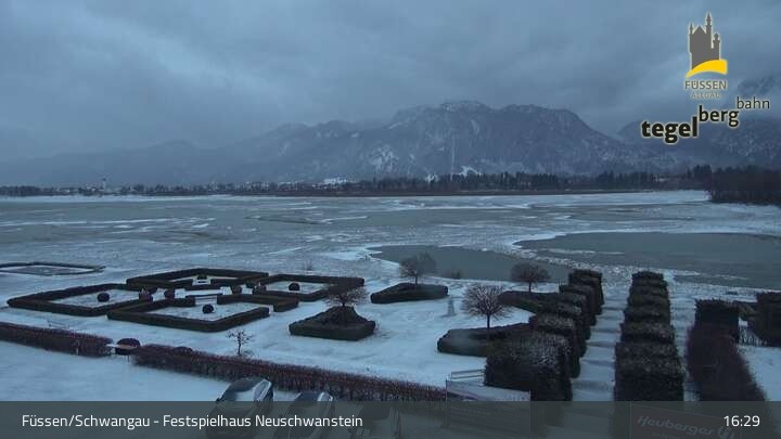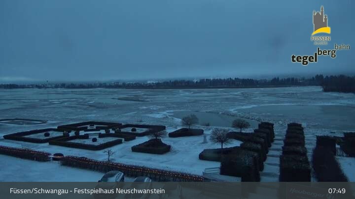 Die Webcam blickt auf den Garten von Ludwigs Festspielhaus in Füssen am Forggensee.
