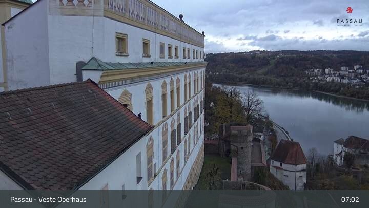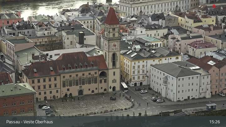 Die Webcam zeigt einen tollen Panoramablick von der Veste Oberhaus auf die Donau und die Altstadt von Passau. Neber der herrschaftlichen Burgfassade sieht man sehr gut die Landzunge zwischen Donau und Inn, auf der die Altstadt mit ihren denkmalgeschützten Häusern liegt. Gut zu erkennen sind unter anderem die Ortspitze am Zusammenfluss der drei Flüsse, das an der Donau liegende Rathaus, der weiße Dom St. Stephan und das erhöhte Kloster Mariahilf in der Innstadt.