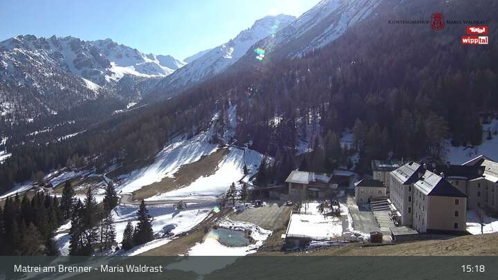 Die Webcam zeigt live einen Eindruck vom bekannten Wallfahrtsort Maria Waldrast am Brenner. Dort befindet sich auch eine Klostergaststätte zur Einkehr.