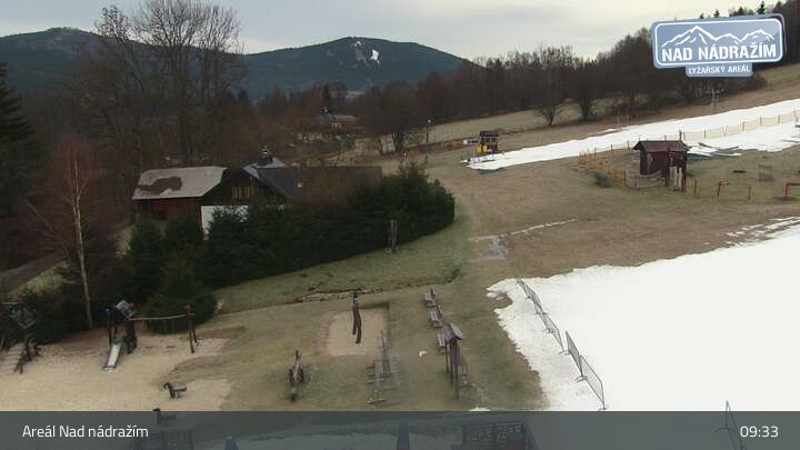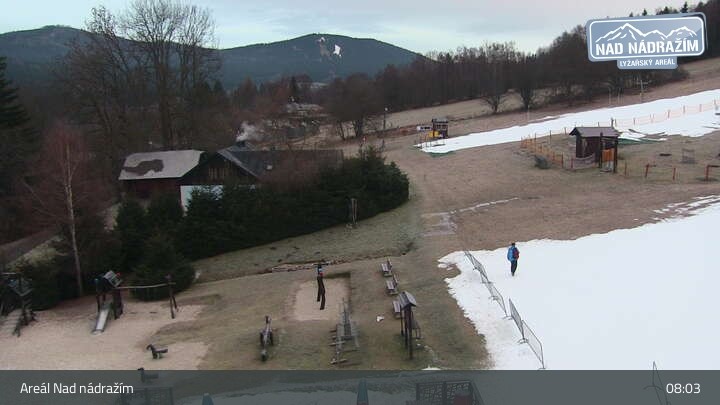 Die Webcam zeigt die Skilifte im Areal Nad nádražím bei Železná Ruda nahe der deutschen Grenze.