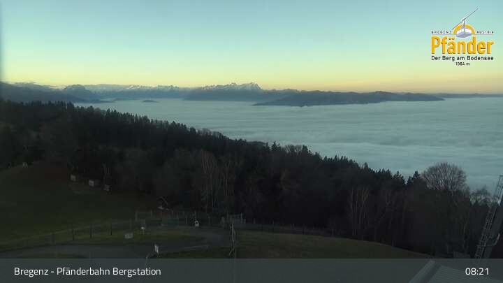 Die Video-Webcam zeigt einen traumhaften Panoramablick von der Bergstation am Pfänder hinunter auf den Bodensee und die Stadt Bregenz.