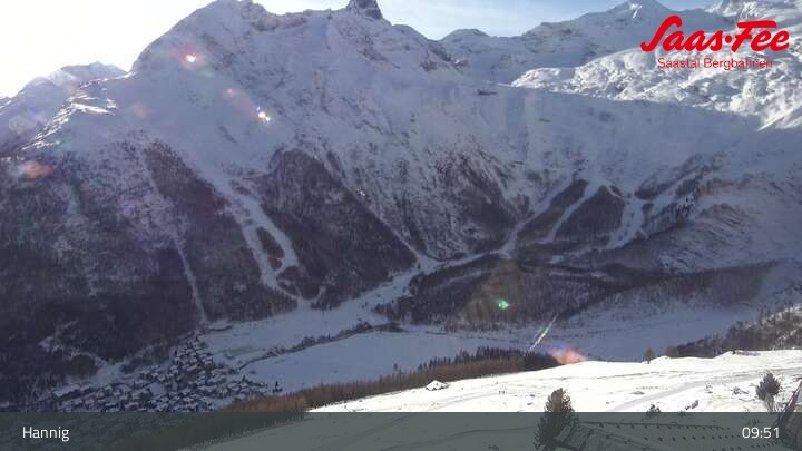 Die Webcam eröffnet einen schönen Ausblick von der Bergstation Hannig über Saas-Fee im Schweizer Kanton Wallis.