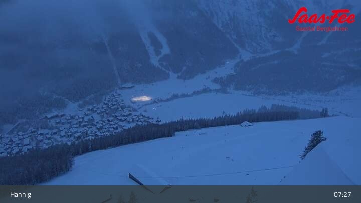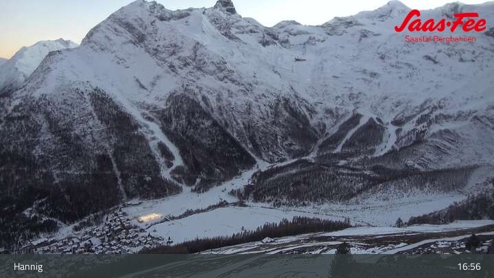 Die Webcam eröffnet einen schönen Ausblick von der Bergstation Hannig über Saas-Fee im Schweizer Kanton Wallis.