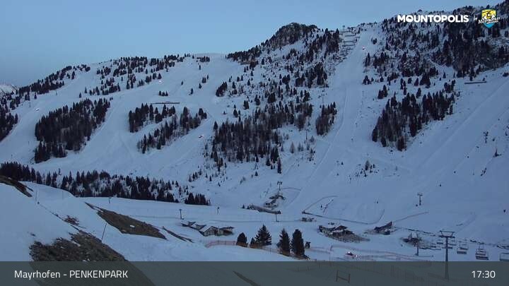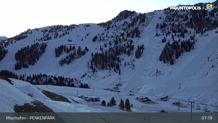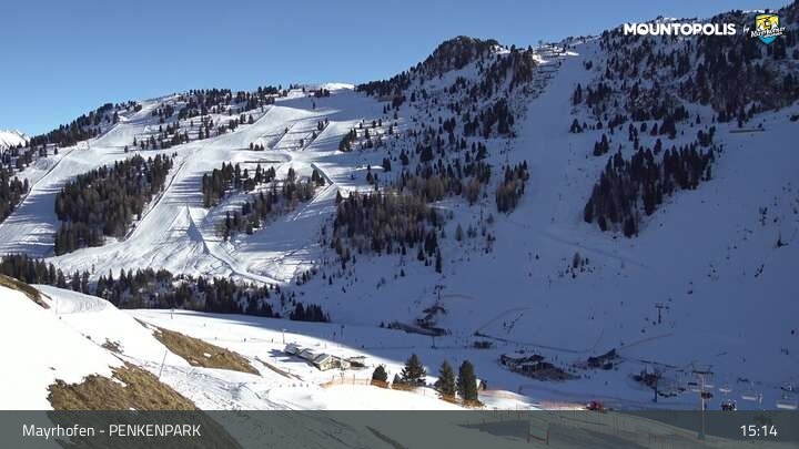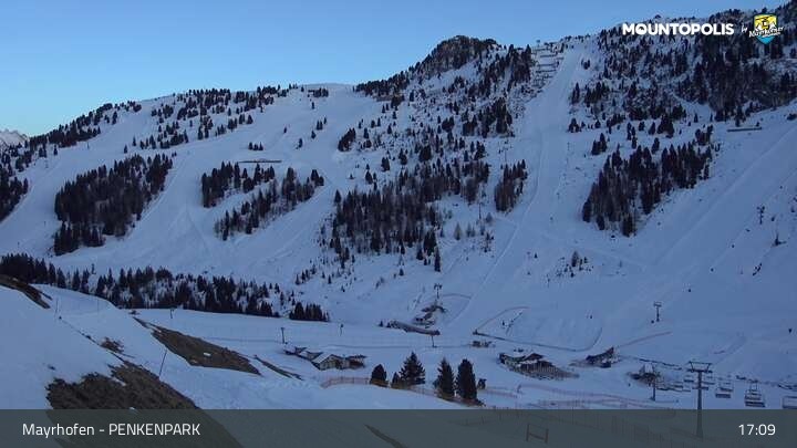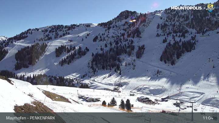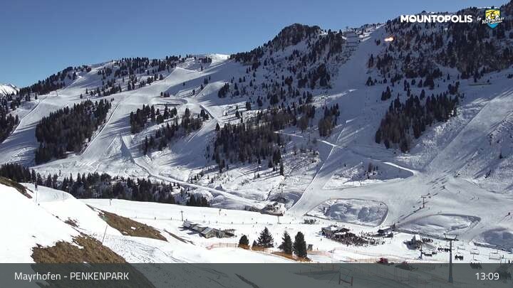 Hier blickst du auf den Vans Penken Park sowie den Sun-Jet Lift im Skigebiet Mayrhofen.