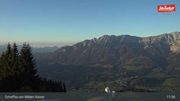 Hier siehst du den Ort Scheffau vom Restaurant Brandlstadl aus. Scheffau liegt am Wilden Kaiser im Brixental.