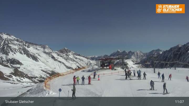Webcam Stubaier Gletscher: Aublick Bergstation Murmele, 8766 ft