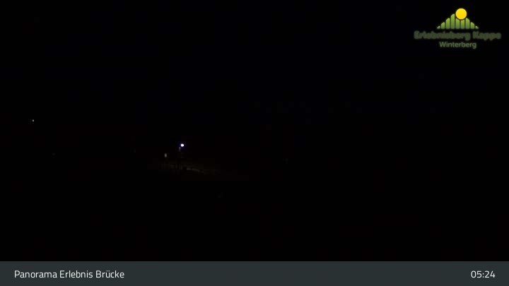 Aktueller Blick auf den Erlebnisberg Kappe in Winterberg. Im Sommer befinden sich hier Teile des Bikeparks und die Panorama Erlebnis Brücke, im Winter siehst du hier unter anderem Skipisten und einen Kinderpark.