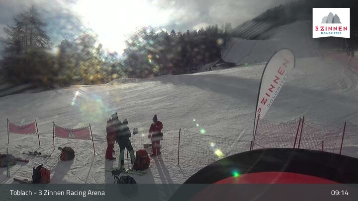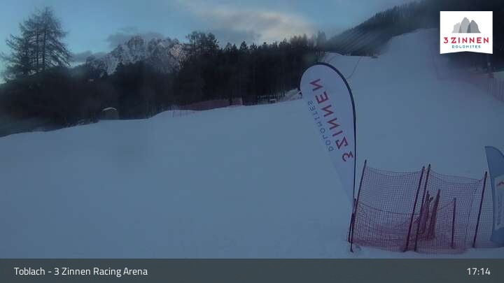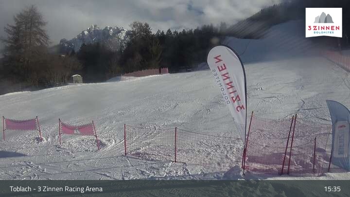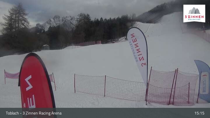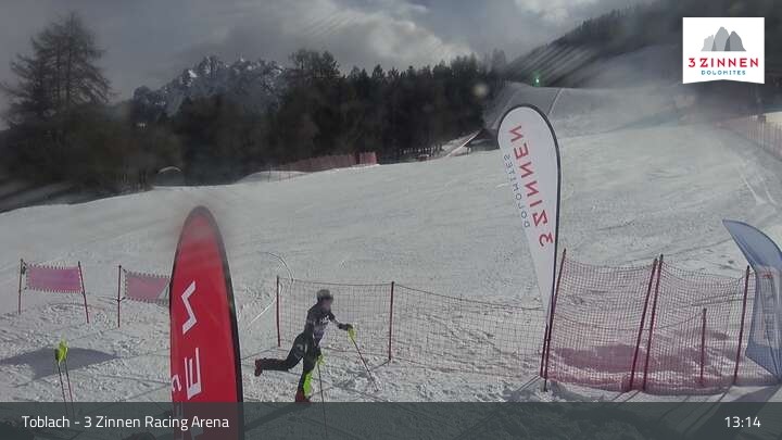 Hier siehst du die Berge rund um Toblach in Südtirol. Die Webcam befindet sich an der Talstation des Trenkerlifts.