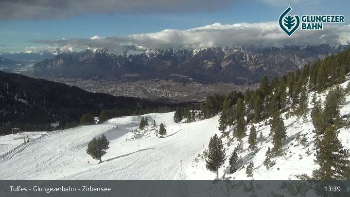 Die Webcam ermöglicht einen tollen Panoramablick auf die Landschaft am Glungezer. Das Bild wird unweit des Zirbensees aufgenommen.