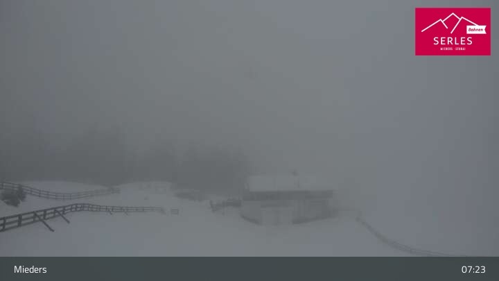 Die Webcam eröffnet den Blick von der Bergstation Koppeneck auf den Hausberg von Mieders, die Serles. Zu sehen sind außerdem das Bergrestaurant Koppeneck mit Kinderspielplatz und der Speichersee.