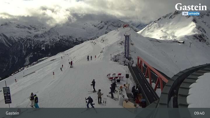 Die Webcam blickt von der Südseite der Bergstation am Stubnerkogel auf die umliegende Bergwelt von Bad Gastein.