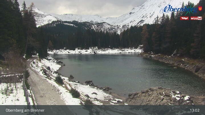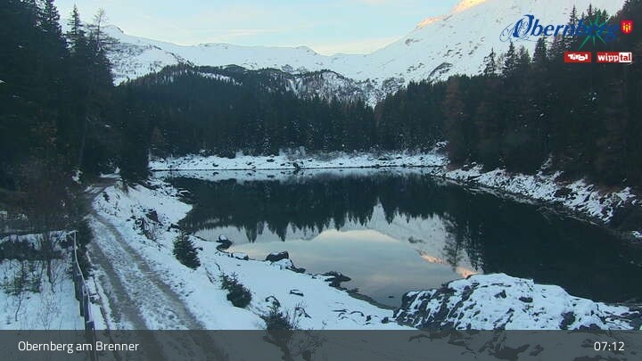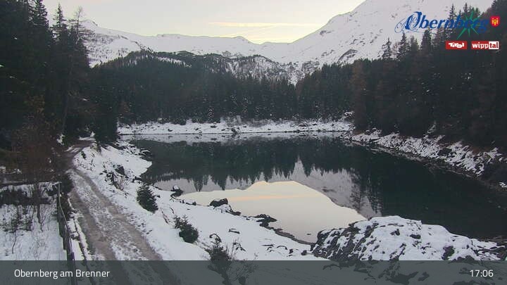 Die Kamera blickt auf den Obernberger See am Brenner.