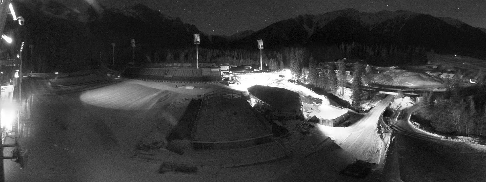 Die Webcam eröffnet dir einen Rundblick über das Biathlonstation in Antholz mit Sicht auf den Schießstand und die Tribüne