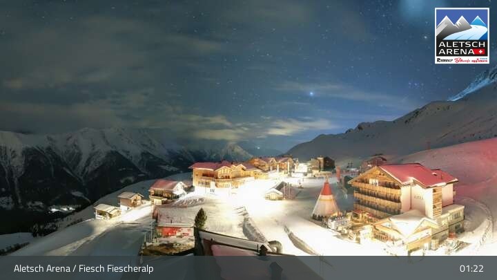 Webcam Aletsch Arena: Blick auf die Fiescheralp, 2,220 m