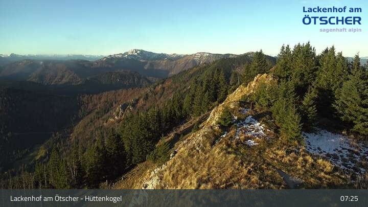 Webcam Aussicht vom Hüttenkogel in Lackenhof, 1,503 m