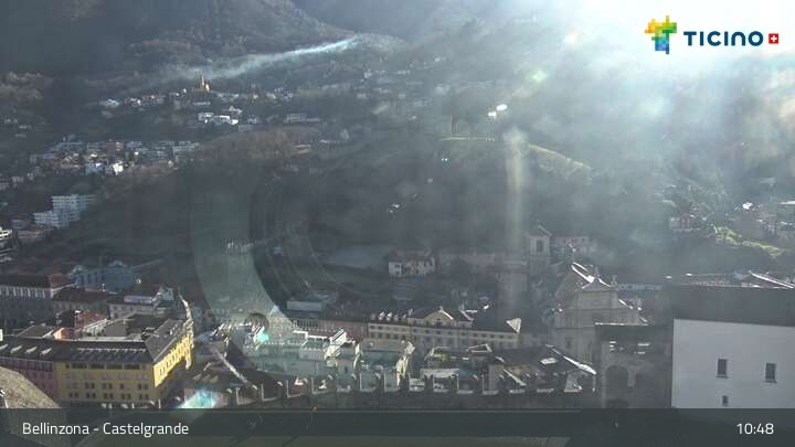Die Webcam blickt auf die Höhenburg Castelgrande in Bellinzona, dem Hauptort des Kantons Tessin in der Schweiz. Sie gehört seit 2000 zum UNESCO Weltkulturerbe.
