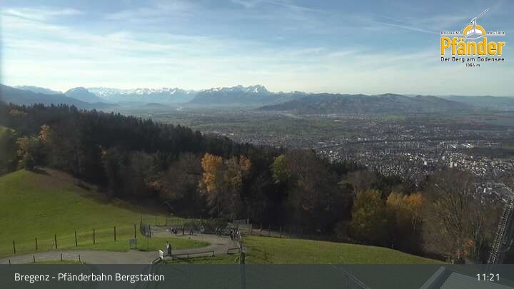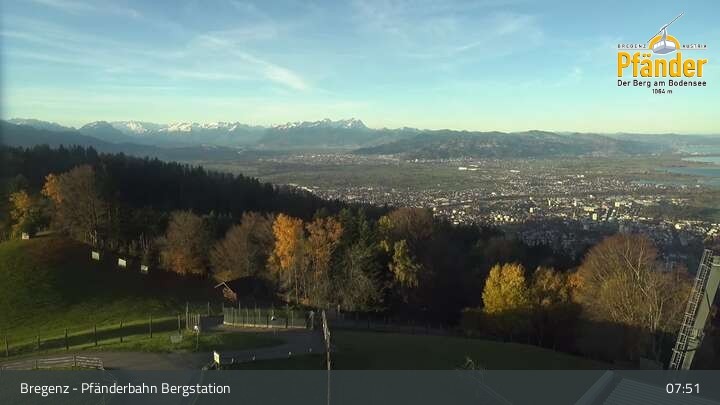 Die Video-Webcam zeigt einen traumhaften Panoramablick von der Bergstation am Pfänder hinunter auf den Bodensee und die Stadt Bregenz.