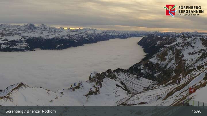 Die Webcam eröffnet dir den Blick vom 2.350 Meter hohen Rothorn zum Brienzersee.
