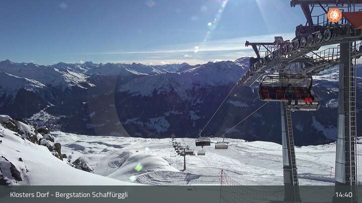 Diese Webcam zeigt die Bergstation des Schaffürggli Lifts auf der Madrisa. Der 2.770 m hohe Berg in den schweizer Alpen bietet vielfältige Wander- und Erlebniswege.