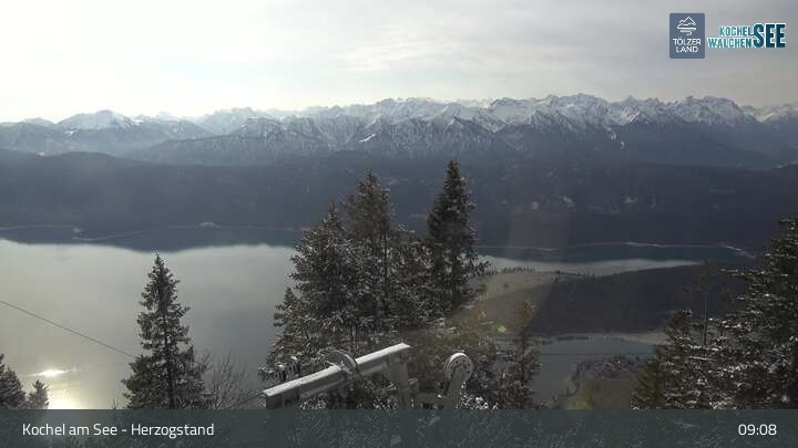 Webcam Herzogstand: Blick auf den Kochelsee, 1,609 m