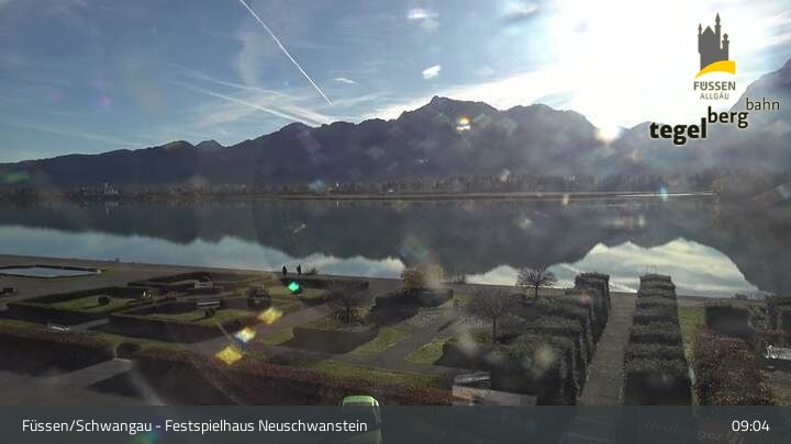 Die Webcam blickt auf den Garten von Ludwigs Festspielhaus in Füssen am Forggensee.
