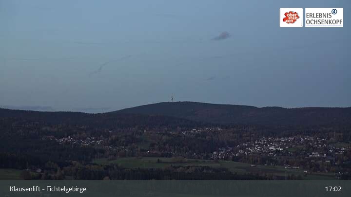 Ausblick von den Klausenliften in Mehlmeisel im Fichtelgebirge. Die Kamera zeigt u.a. den Schneeberg und den Ochsenkopf.