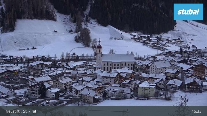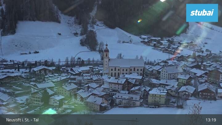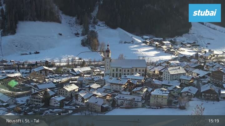 Die Webcam blickt auf den kleinen Ort Neustift im Stubaital.