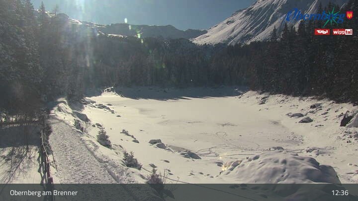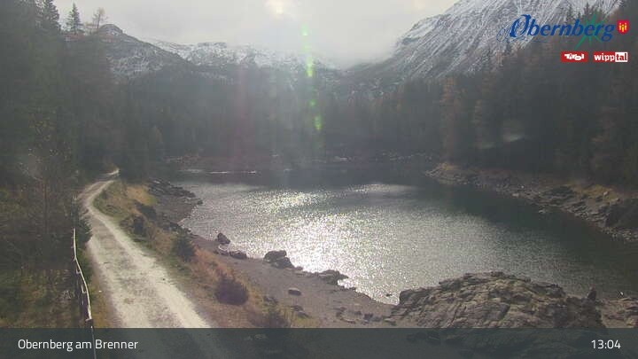 Die Kamera blickt auf den Obernberger See am Brenner.