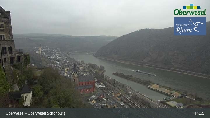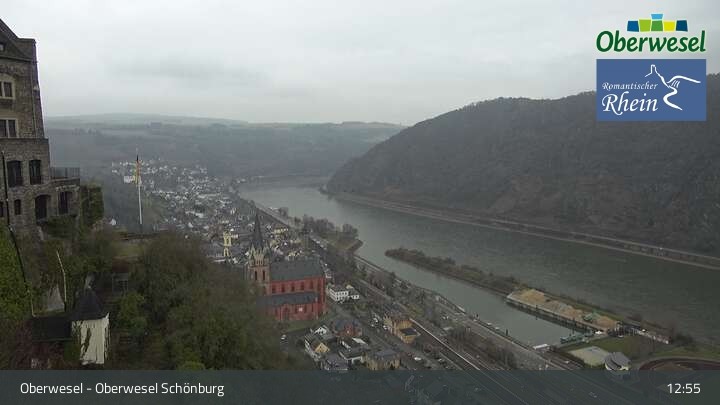 Die Webcam blickt über die Schönburg im rheinland-pfälzischen Oberwesel auf den Rhein. Die Höhenburg stammt aus dem 12. Jahrhundert.