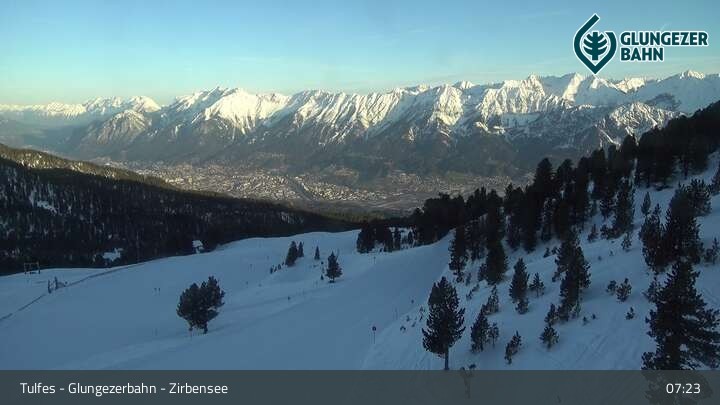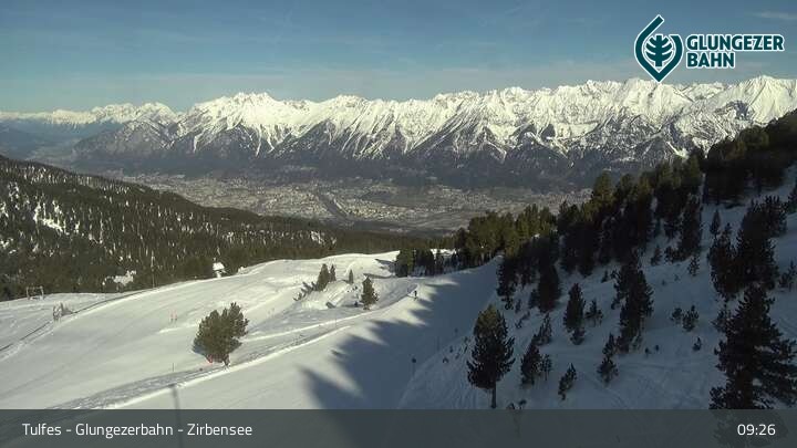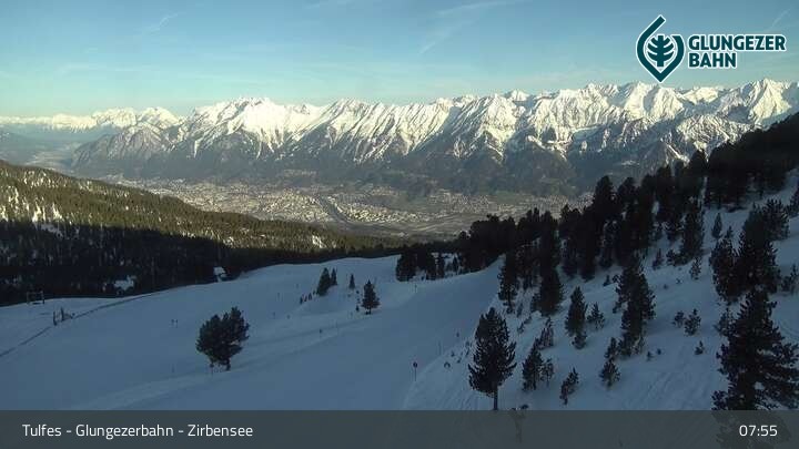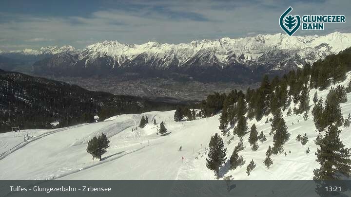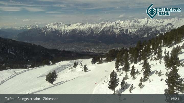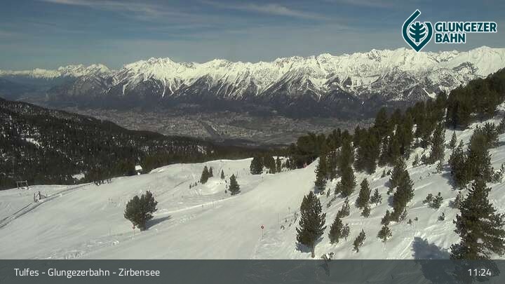 Die Webcam ermöglicht einen tollen Panoramablick auf die Landschaft am Glungezer. Das Bild wird unweit des Zirbensees aufgenommen.