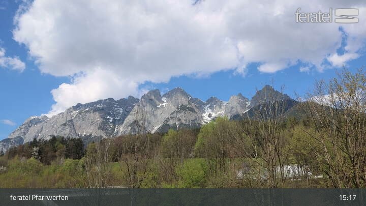 Blick von Pfarrwerfen, unter anderem auf die Burg Hohenwerfen.