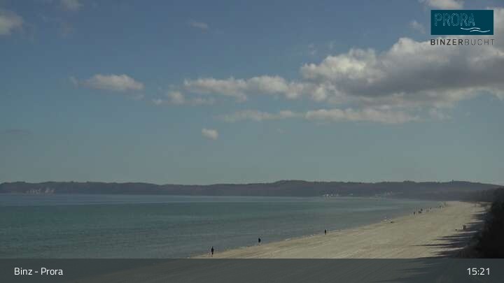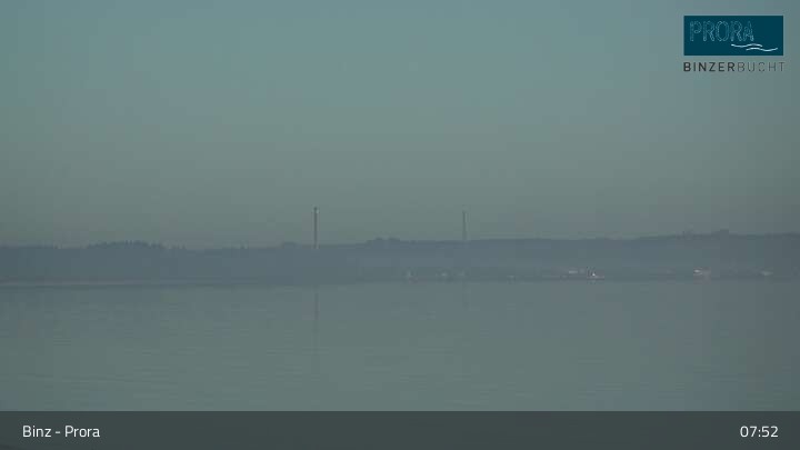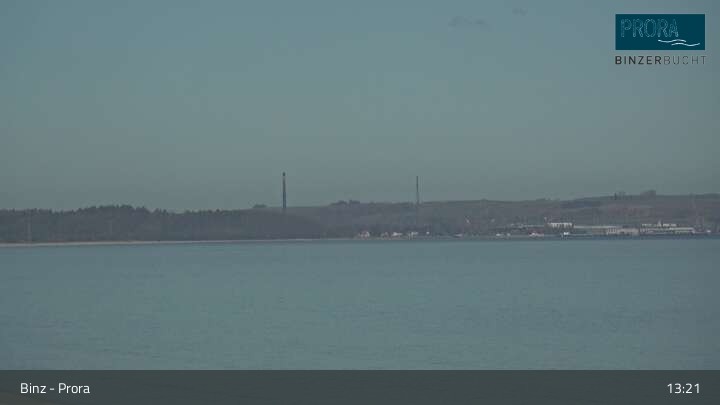 Die Kamera befindet sich auf der Insel Rügen am Strand von Prora und blickt über die Binzer Bucht.