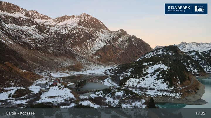 Hier siehst du den Stausee Kops in Galtür, der in den österreichischen Alpen im Bundesland Vorarlberg in der Silvretta-Gruppe liegt.