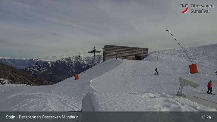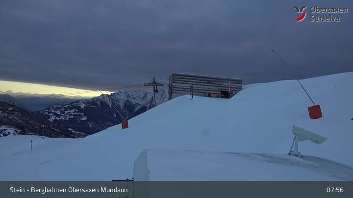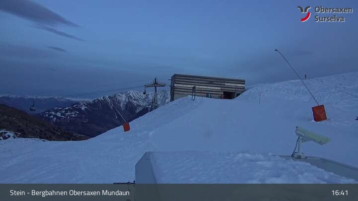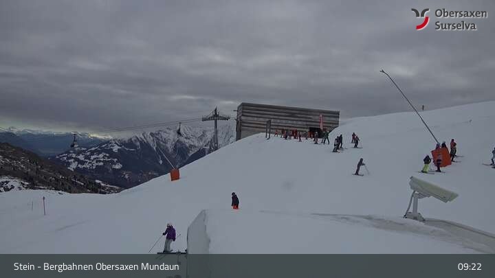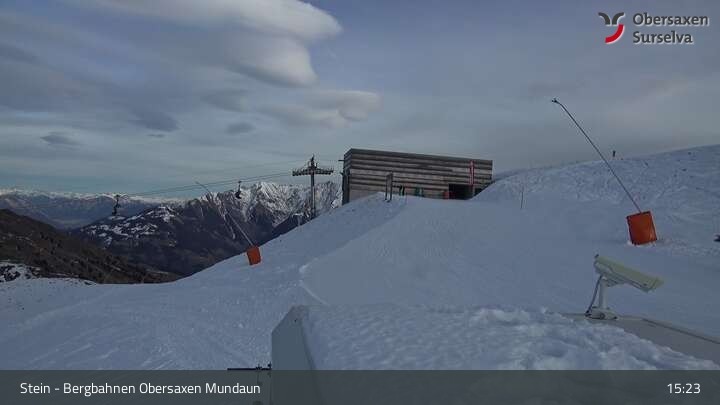 Die Webcam zeigt die Bergstation des Misanenga - Untermatt Lifts in Obersaxen in Graubünden. Die umliegende Alpenwelt ist ideal für Wanderungen und Mountainbiken geeignet.